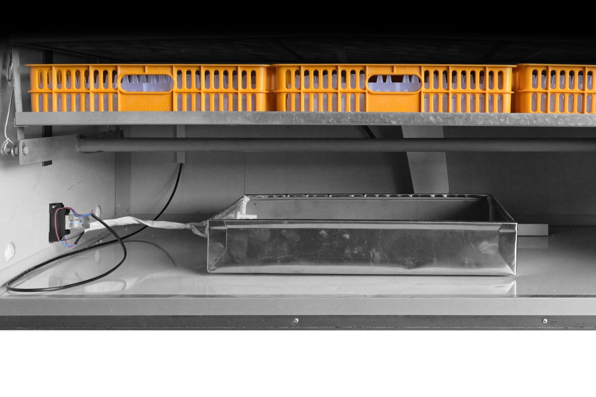 A fan-assisted airflow system distributes heat evenly throughout the cabinet to maintain consistent incubation temperatures across all trays. The incubator also features a stainless steel humidity tray and integrated safety systems to help maintain correct humidity levels during operation.